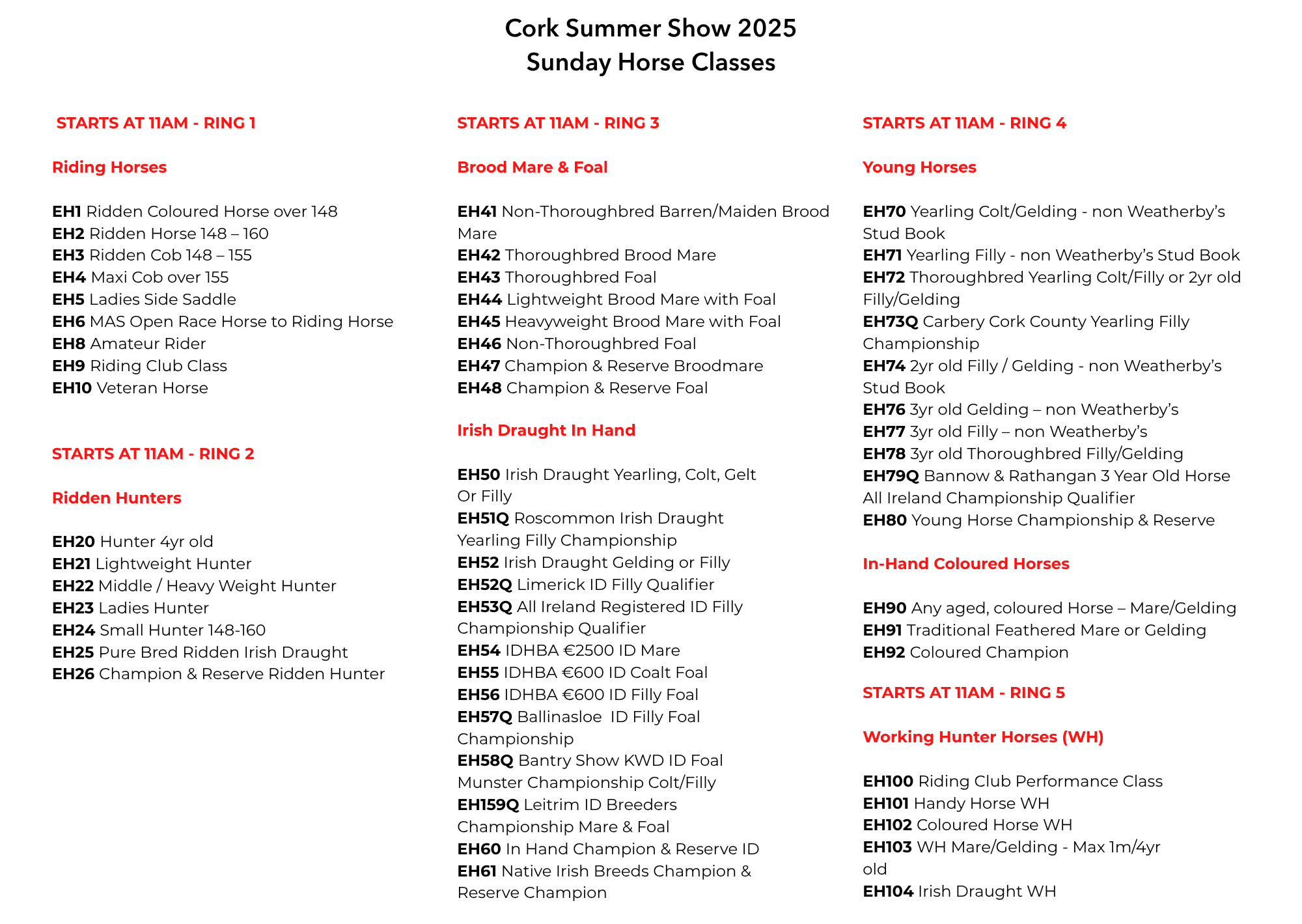 RING Classes for Horses information here