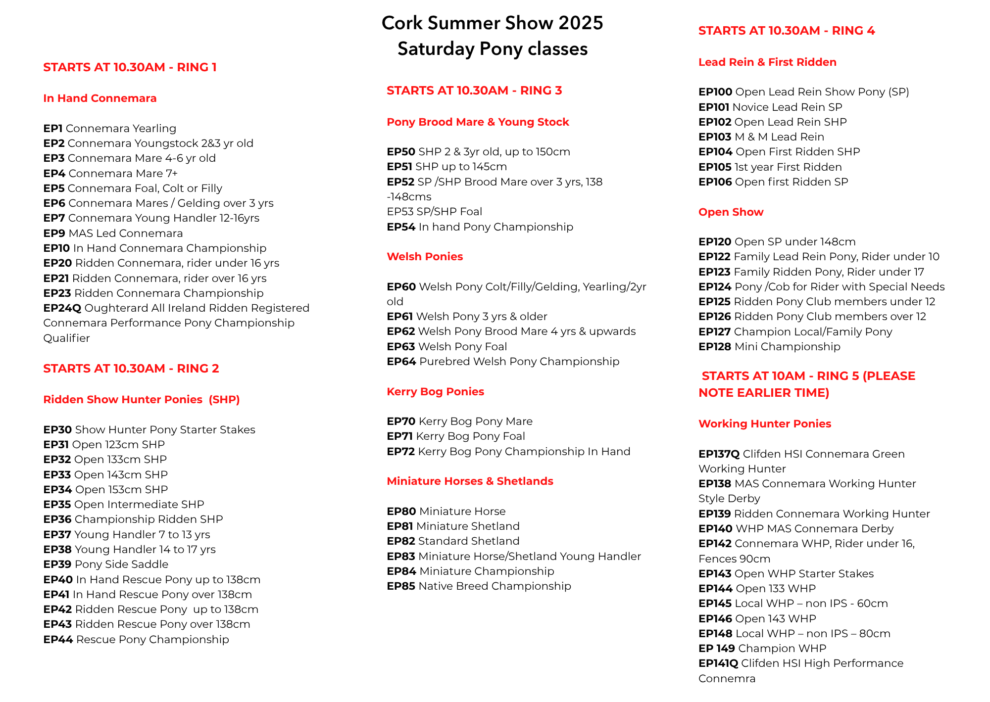 Gate B opens at 7.15am. Showing rings start at 10.30am sharp (Working Hunter Ponies begin at 10.00am).