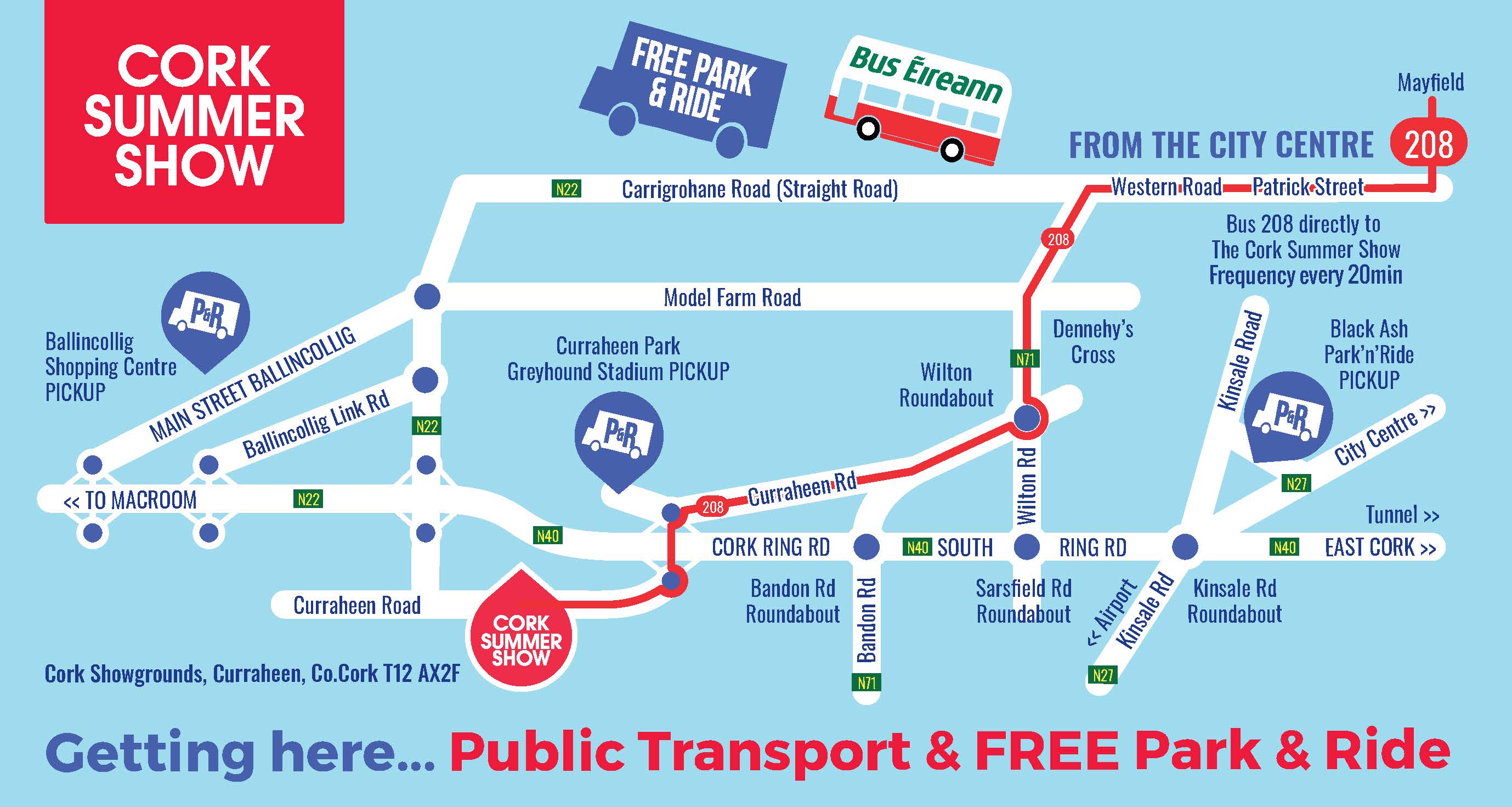 Make your experience stress free by taking the free Park & Rides from Ballincollig Shopping Centre or Black Ash. Buses have direct routes into the grounds, allowing your more time to enjoy the show.